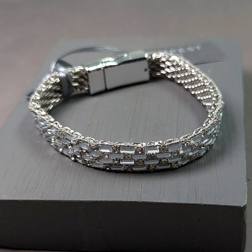 Swirl disc element and semi-precious beads multi-chain magnetic bracelet -